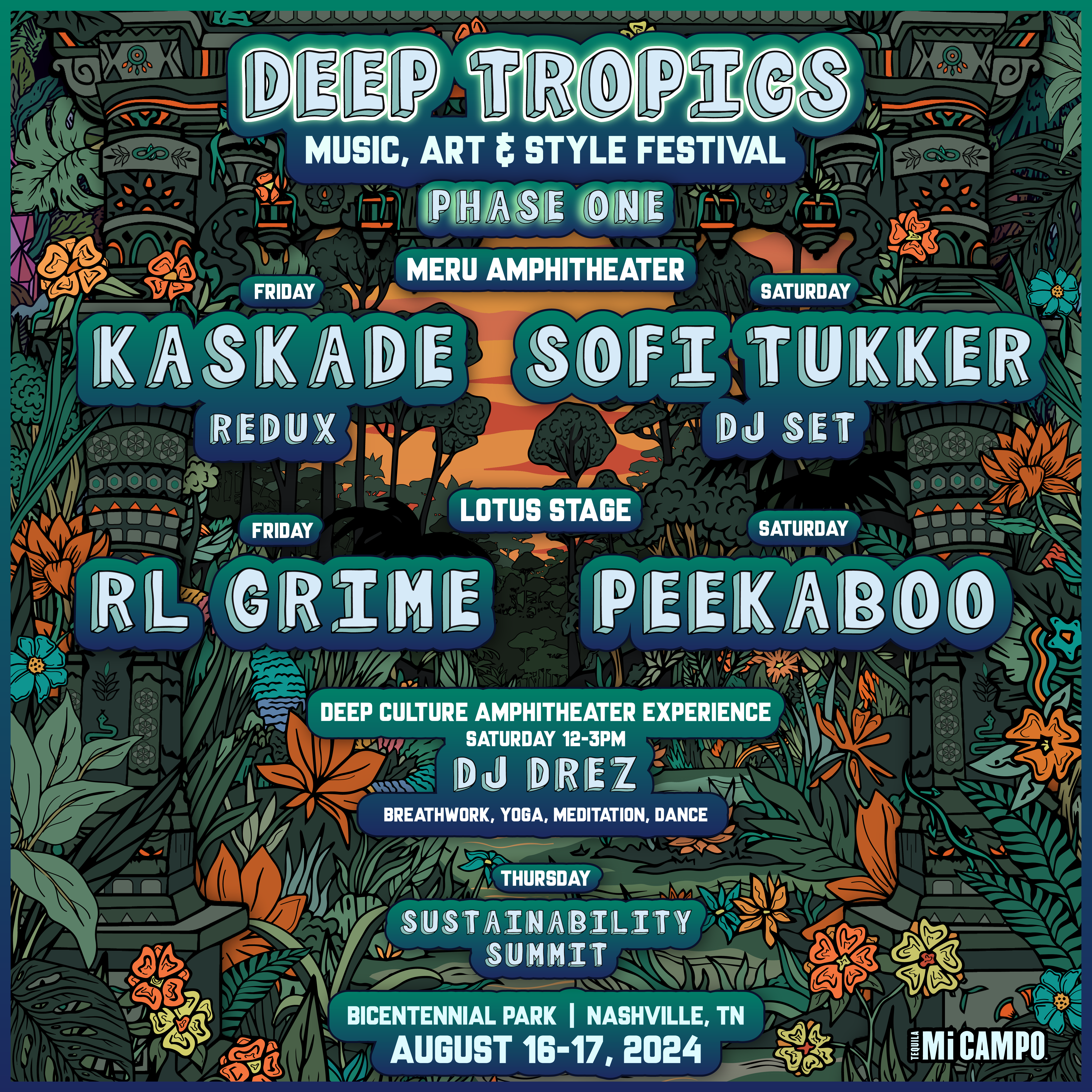 Produced by the visionary team at Full Circle Presents, Deep Tropics is more than just a music festival; it’s a celebration of culture, community, and environmental consciousness. With its breathtaking venue set against the vibrant backdrop of Nashville’s Bicentennial Park, Deep Tropics promises an immersive experience like no other.